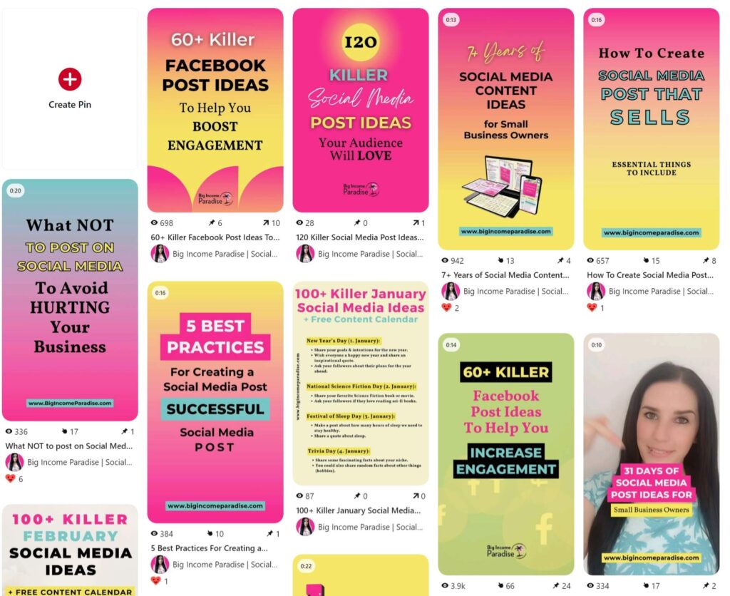 Pinterest เป็นเรื่องเกี่ยวกับภาพ แนวตั้ง (พิน) หรือวิดีโอ (พินไอเดีย) และนั่นคือสิ่งแรกที่ผู้คนเห็น หากพินไม่น่าสนใจและไม่มีชื่อเรื่องที่น่าสนใจ ก็จะไม่มีใครคลิกพินนั้น นั่นหมายถึงไม่มีการเข้าชมสำหรับคุณ