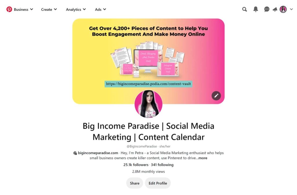 ฉันสร้างโปรไฟล์ในปี 2560 และทิ้งมันไปเพราะฉันยังคงสนุกกับการใช้ Facebook เพื่อขยายธุรกิจของฉัน แต่ในปี 2019 ฉันต้องการลองอะไรใหม่ๆ บางอย่างที่จะกระตุ้นให้เกิดการเข้าชมบล็อกของฉันเป็นจำนวนมาก