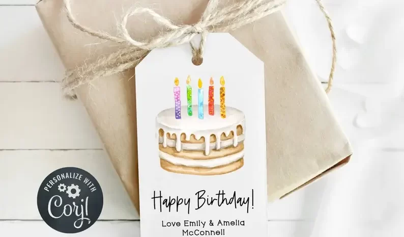 ด้วยการออกแบบที่สวยงามด้วยสีน้ำ แท็กของขวัญวันเกิดที่มีความสุขนี้ยังสามารถระบุชื่อผู้ให้ของขวัญได้ แท็กของขวัญวันเกิดแบบนี้เหมาะสำหรับเพื่อนร่วมงาน เพื่อน หรือแม้แต่แม่ของคุณ ให้ผลลัพธ์ที่ดีที่สุด ไม่ว่าคุณจะเลือกห่อของขวัญแบบไหน