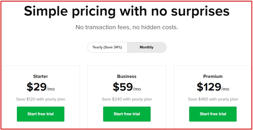 อย่างที่กล่าวไปแล้ว แพลตฟอร์มอีคอมเมิร์ซนี้มีแผนราคาสามแผนซึ่งรวมถึงแผน Starter, Business และ Premium