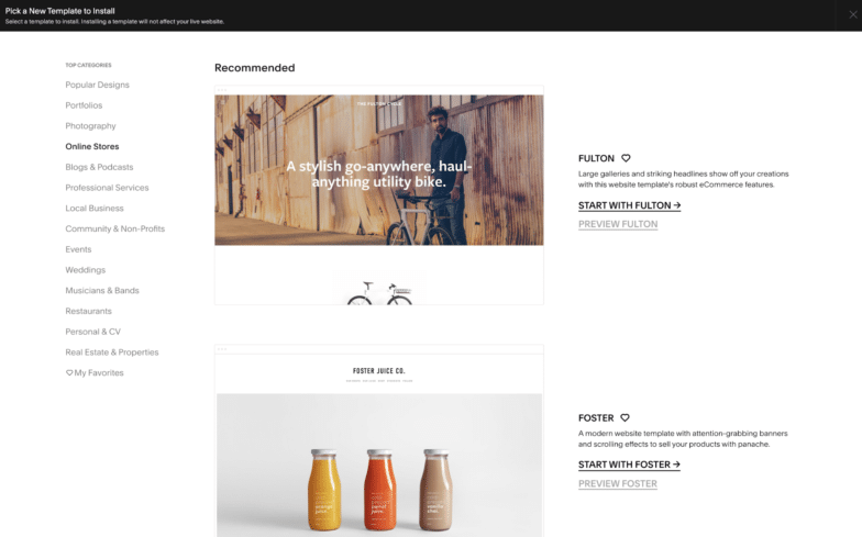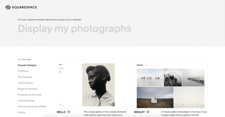 ด้วย Squarespace มันง่ายมากที่จะเริ่มสร้างเว็บไซต์ คุณไม่จำเป็นต้องกังวลกับการลงชื่อสมัครใช้โฮสติ้งหรือซื้อชื่อโดเมน คุณเพียงแค่ลงชื่อสมัครใช้บัญชี Squarespace และเริ่มสร้างไซต์ของคุณ ภายในไม่กี่วินาที คุณกำลังเลือกเทมเพลตสำหรับรูปลักษณ์ของไซต์ของคุณ