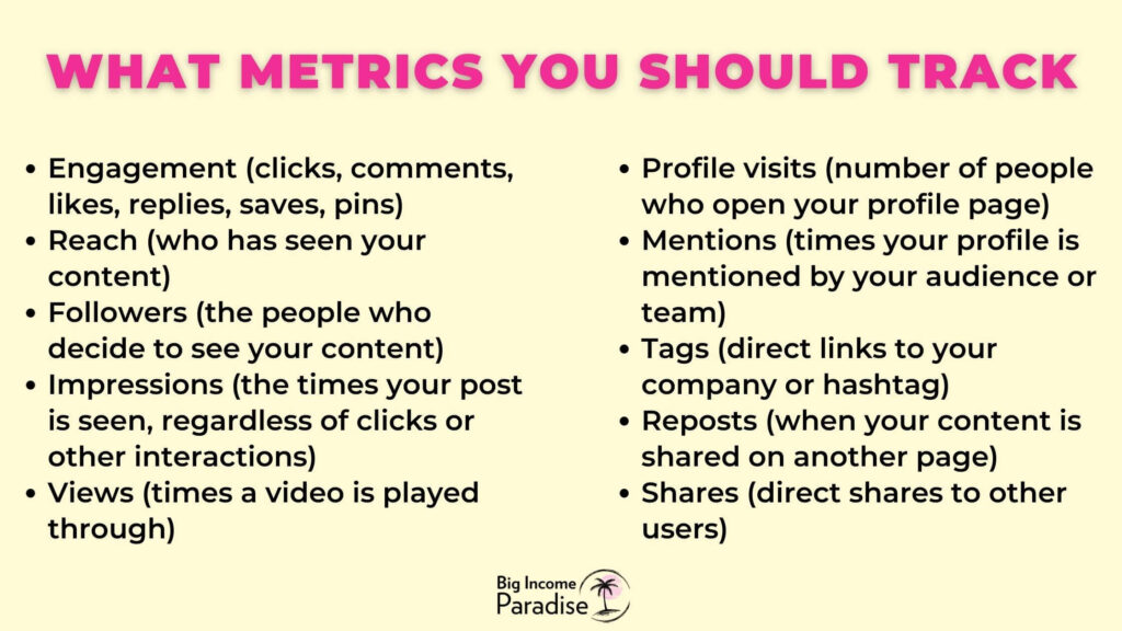 ขึ้นอยู่กับว่าคุณอยู่ใน กลยุทธ์การตลาดเนื้อหาบนโซเชียลมีเดีย มากแค่ไหน เมตริกต่างๆ จะมีน้ำหนักมากกว่า ในขณะที่คุณต้องการปรับปรุงการมีส่วนร่วมโดยรวม ขั้นตอนต่างๆ ในการเดินทางของคุณจะได้รับประโยชน์จากการมุ่งเน้นบางอย่าง