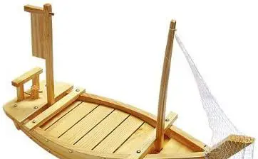 นี่คือคลาสสิก เรือเหล่านี้แกะสลักจากไม้ ให้ความรู้สึกเหมือนจริงในการเสิร์ฟซูชิ อย่างไรก็ตาม พวกเขาต้องการการบำรุงรักษาบางอย่าง เรือซูชิที่ทำจากไม้สามารถกักเก็บความชื้นได้ ดังนั้นจึงจำเป็นอย่างยิ่งที่จะต้องทำให้แห้งอย่างเหมาะสม เรือซูชิไม้ที่ดีสามารถเพิ่มสัมผัสที่เรียบง่ายให้กับร้านซูชิของคุณ