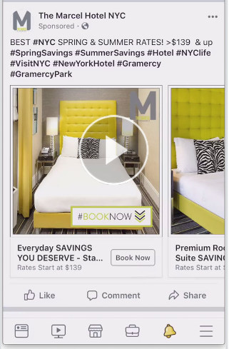 โฆษณาสไลด์โชว์ที่มีชื่อว่า “โฆษณาที่เหมือนวิดีโอ” รวมโฆษณารูปภาพและวิดีโอไว้ในสื่อเดียว ประเภทโฆษณาบน Facebook นี้เหมาะสำหรับนักการตลาดที่ต้องการรูปแบบโฆษณาที่มีความพยายามต่ำซึ่งให้ผลลัพธ์คุณภาพสูง