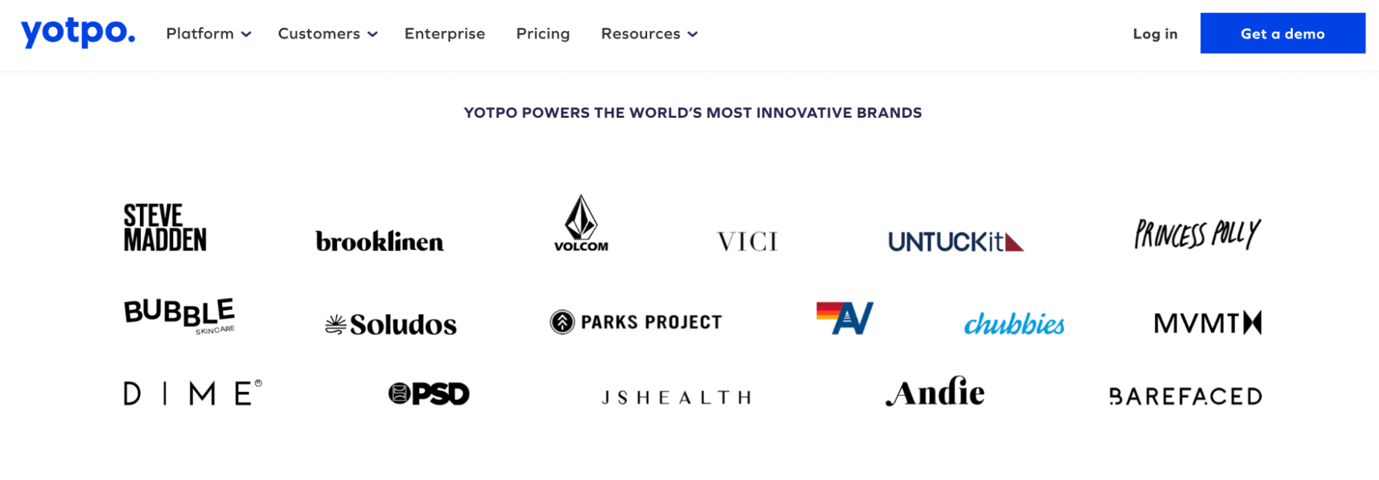 Yotpo เป็นแพลตฟอร์มสำหรับบริษัทอีคอมเมิร์ซในการรับ แปลง รักษา และทำความเข้าใจลูกค้าได้แม่นยำยิ่งขึ้น ให้บริการที่หลากหลายแก่ลูกค้า รวมถึงเนื้อหาที่ผู้ใช้สร้างขึ้น โปรแกรมความภักดีและอื่น ๆ อีกมากมาย