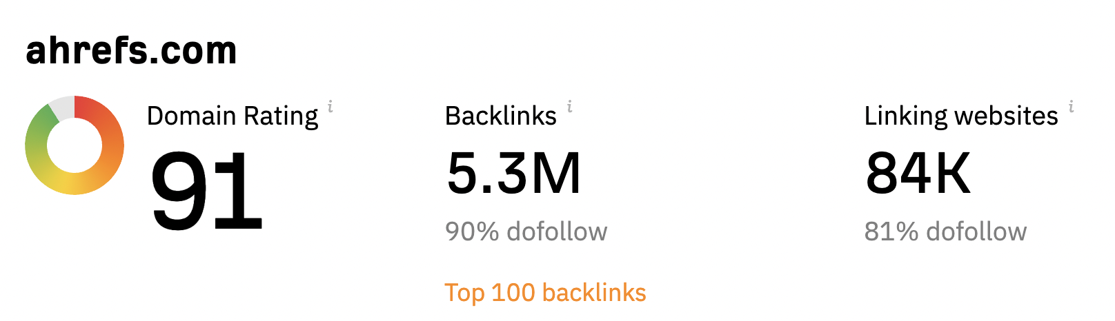 ดูเหมือนว่าลิงก์ย้อนกลับถูกใช้เป็นสัญญาณของ "ความไว้วางใจ" ซึ่งแสดงว่าผู้อื่นคิดว่าไซต์ของคุณเป็นหน่วยงานที่พวกเขาสามารถพึ่งพาได้ นั่นเป็นเหตุผลที่ Ahrefs รวมลิงก์ย้อนกลับไว้ในสมการที่ใช้สำหรับการจัดอันดับโดเมน (DR) ของไซต์ เพียงตรวจสอบโปรไฟล์ของ Ahrefs สำหรับ URL ของตัวเอง:
