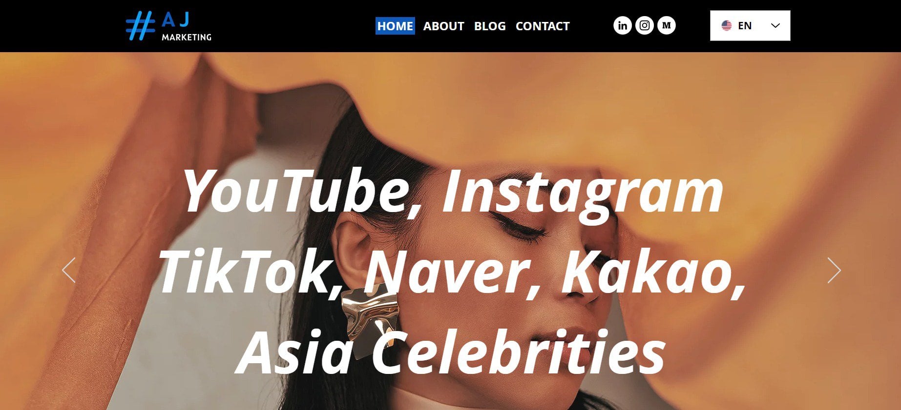 Asya'da bir dijital pazarlama ve hatta tam bir influencer çözümü sunan AJ pazarlama, bir sosyal medya pazarlama ajansı olarak faaliyet gösteriyor. Temel olarak, web sayfaları, karar verebileceğiniz tüm en iyi etkileyicilerini sunar. Sosyal medya reklamcılığına, içerik pazarlamasına ve hatta mobil ve uygulama pazarlamasına odaklanan 2019'dan beri faaliyet gösteriyorlar.