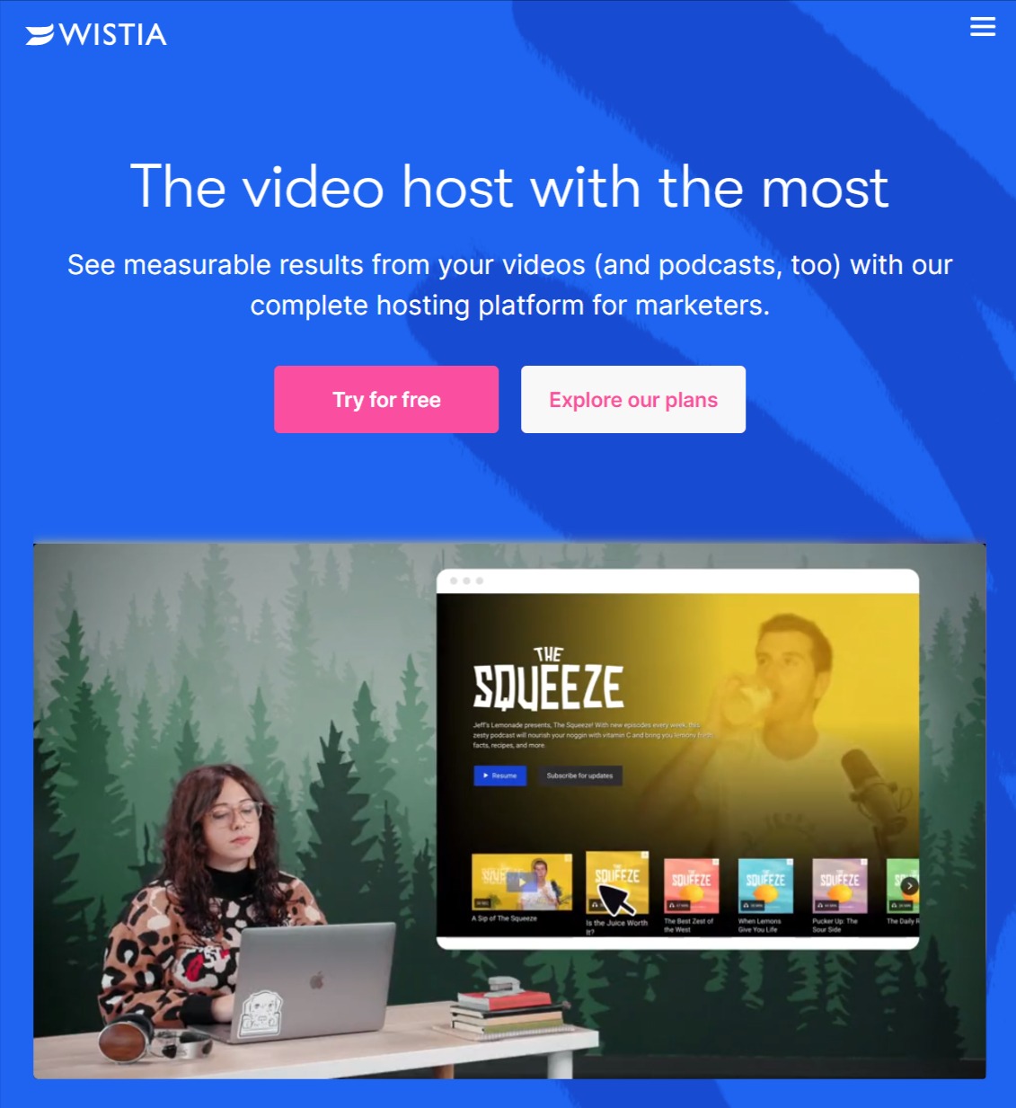 Wistia, videolarınızı hem 4K hem de 360° videolarınız için uyarlanabilir akış ve destekle barındırmanıza olanak tanıyan, etkileyici derecede profesyonel bir video barındırma platformudur. Üstelik bunlar herhangi bir cihazda çalışabilir. Wistia ayrıca video pazarlama kampanyalarınızı daha iyi anlamanıza ve kendi pazarlama eğitiminizi geliştirmenize olanak tanıyan mükemmel bir analiz bileşeni içerir. Wistia'nın bir diğer önemli özelliği, videolarınızın Google tarafından görülmesini sağlayan yerleşik SEO'dur. Son olarak, Wistia, izleyici üyelerinizin e-postalarını isteme olanağı sağlaması nedeniyle yüksek sayıda müşteri adayı oluşturmaya izin verir.