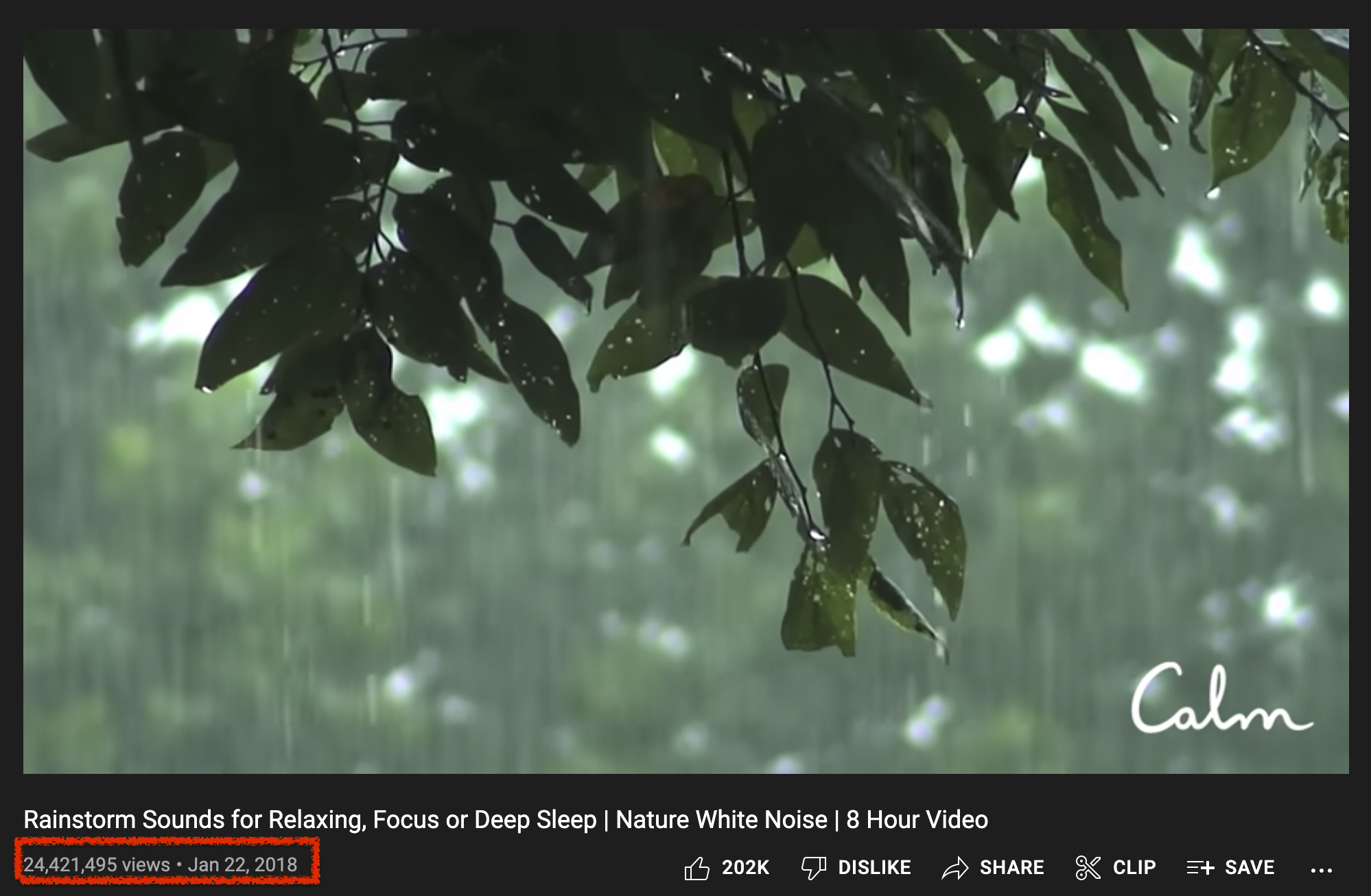 Calm'ın kanalındaki en popüler YouTube videosu 8 saatlik bir video, “ Rahatlatıcı, Odaklanma veya Derin Uyku için Yağmur Fırtınası Sesleri | Doğa Beyaz Gürültü . İnsanlar bu videoyu 24 milyon kez izledi ve günlük ortalama 14.000 kez görüntülendi.