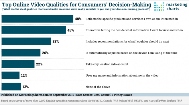 Videonuz basit olabilir ve bankayı aşan bir üretim değerine ihtiyaç duymaz. Tüketiciler, ürünleri sergileyen, etkileşimli öğeler içeren ve daha sonra ne yapmaları gerektiğine ilişkin önerileri vurgulayan basit videolar arıyor.