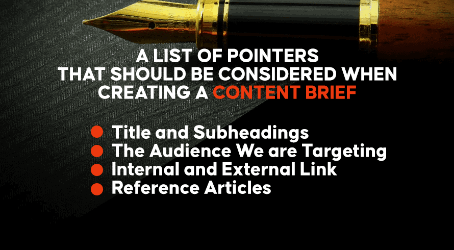 İçerik pazarlamacıları ve SEO stratejistleri, malzeme stratejisini ve editoryal içeriğin tüm şemaya nasıl uyduğunu tanımlamak için araştırmaları denetler. Araştırma sürecinin ardından, belirli içerik parçaları içerik planlarına dönüştürülür ve malzemenin görsel bir temsili olarak hizmet veren bir içerik takviminde planlanır. Yazarlar daha sonra içerik oluşturma sürecinin kendisi üzerinde çalışmaya gidebilirler. Bu, brifing sürecinin devreye girdiği zamandır.
