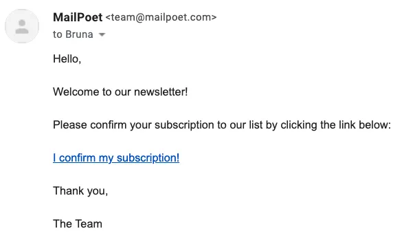 Yukarıdaki resimde görebileceğiniz gibi, alıcıların sizden e-posta almak istediklerini onaylamak için tıklamaları gereken bir düğme var.