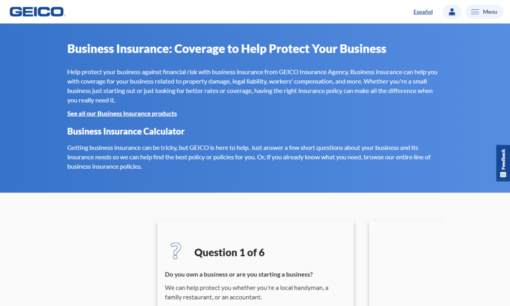 Geico, şirketinizi korumaya yardımcı olmak için çeşitli iş sigortası ürünleri sunar. Ticari otomobil sigortasından işçi tazminatına kadar Geico, işinizin sorunsuz bir şekilde devam etmesi için ihtiyaç duyduğunuz teminata sahiptir.