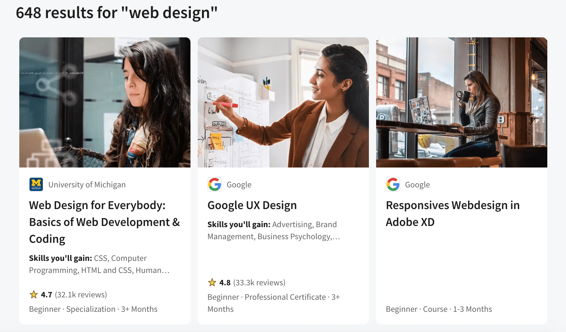 Öğrenme platformu Coursera, her seviyeye uygun yüzlerce web tasarım kursuna sahiptir: