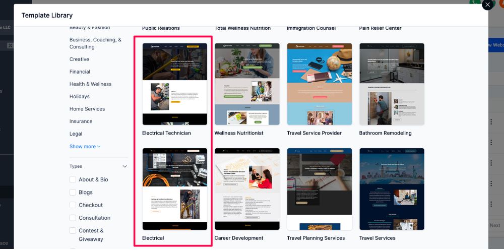 Bu aşamada GoHighLevel'in elektrikçi şablonunu kullanarak web sitenizi kurmanız gerekiyor.