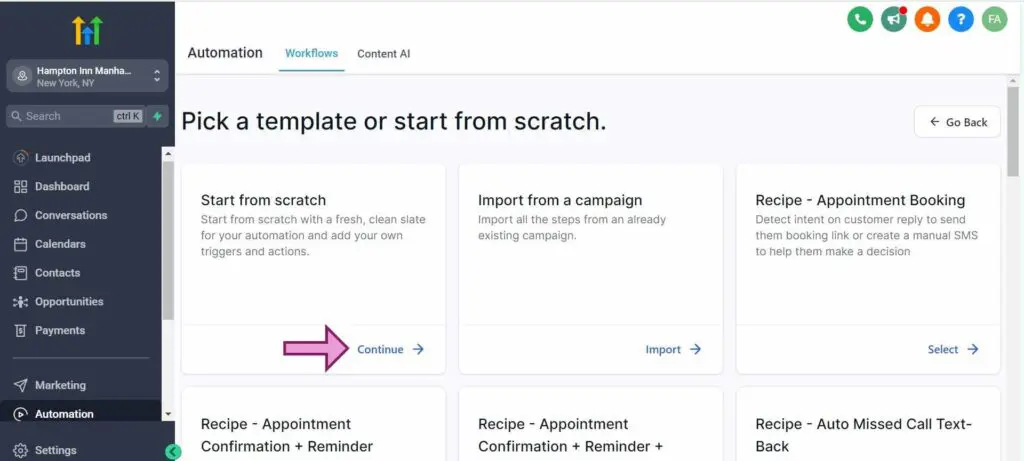 Şablon Kullanılabilirliği: GoHighLevel, sıfırdan başlamaya gerek kalmadan kampanyalar, dönüşüm hunileri ve iletişim kurmanız için özel olarak tasarlanmış ücretsiz şablonlar sağlar.