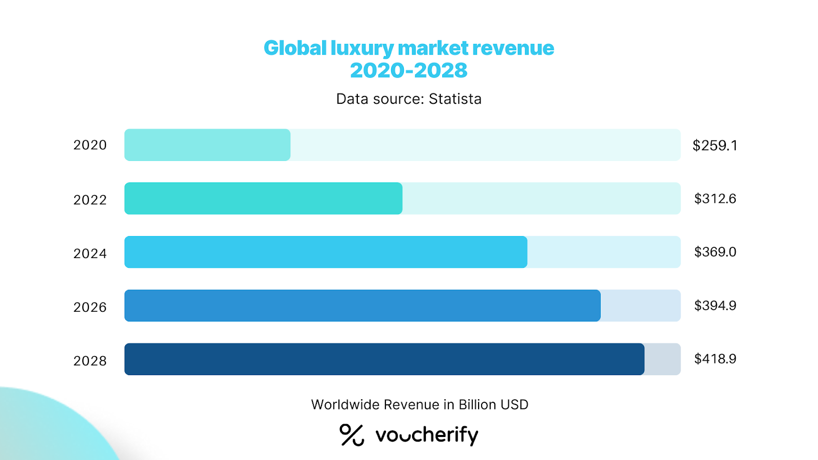 İstatistiklere göre, lüks mallardaki küresel gelirin, özellikle çevrimiçi lüks satışların artmasıyla birlikte istikrarlı bir şekilde artması bekleniyor.