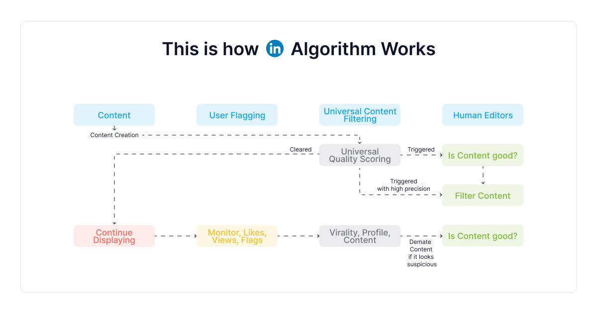LinkedIn'e gönderdiğinizde, sistemleri içeriği anında analiz eder ve spam, düşük kaliteli veya onaylanmış olup olmadığını belirler.