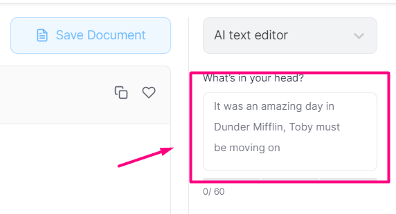 4. Yapay zeka yazarlarımıza 'Kafanızda ne var?' başlığı altında biraz bilgi verin. '. Bunu bir anahtar kelime biçiminde yapabilirsiniz.
