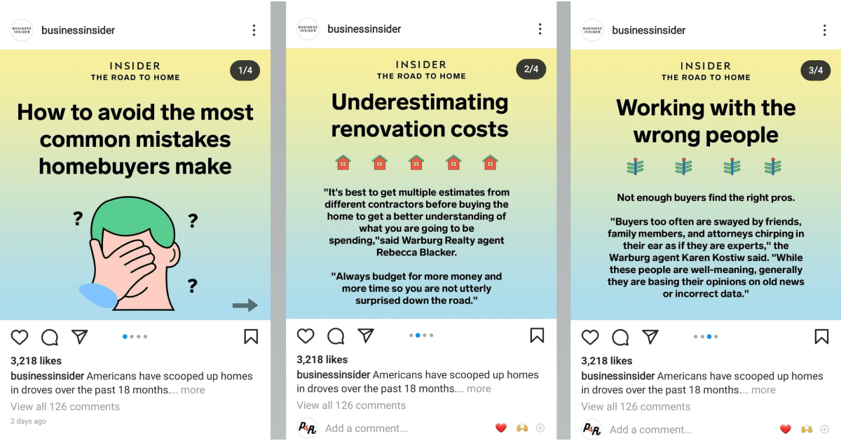 Instagram'da blog içeriğini tanıtmanın tipik bir yöntemi Carousels kullanmaktır.