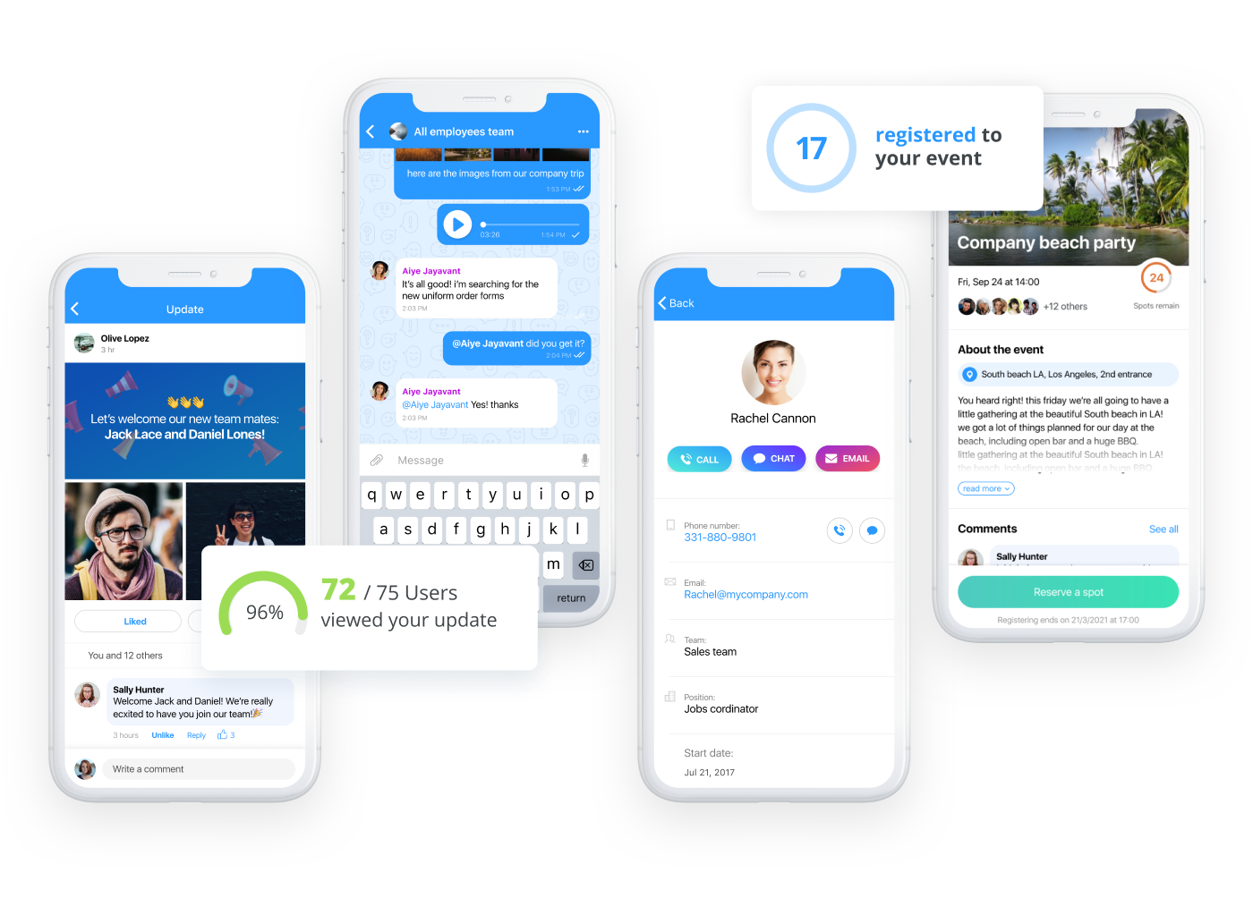 - Bir ekibi veya çalışanı hedeflerine ulaştığı için tebrik etmek için güncelleme özelliğini kullanın. Şirket haberlerini şirketin haber akışında duyurarak iletişimin akışını sürdürün. Çalışanları takdir ederek, daha fazlasını başarmaya devam etmek için heyecanlı ve motive olurlar.