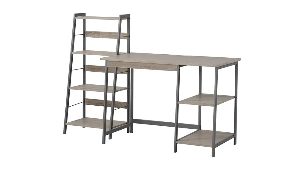 Alanınız kısıtlıysa ve/veya ofisinizde minimalist bir görünüm tercih ediyorsanız, bu sette küçük bir masa ve metal ve geri kazanılmış ahşaptan yapılmış bir kitaplık bulunur. Masada bir yazıcı veya masaüstü için mükemmel olan 2 raf vardır ve kitaplıkta 4 raf vardır, bu nedenle eşyalarınızı koyabileceğiniz pek çok yer vardır. Toplamda, boyutlar 23,6 "D x 43" G x 47 "Y'dir.