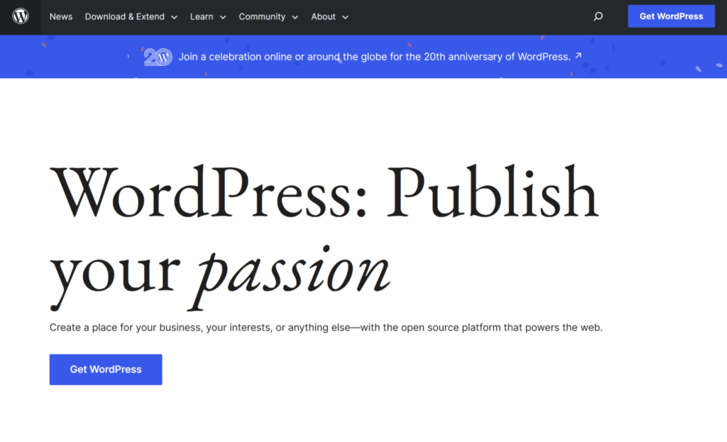 不要与 WordPress.com(又名我们稍后讨论的完全托管版本)混淆,WordPress.org 是一个免费的开源平台,是博客平台的有力竞争者。