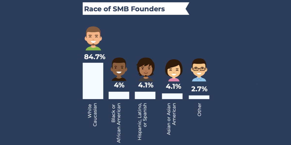 商业多元化对于任何国家和经济体都很重要,但在美国,不同种族之间似乎存在差异。 白人或高加索人绝大多数拥有 84.7% 的小企业,而黑人或非裔美国人则占 4.1%。 西班牙裔、拉丁裔或西班牙裔占 4.2%,与亚裔或亚裔美国人相同。 美洲原住民、中东人、夏威夷原住民和太平洋岛民占所有小企业的 4%。