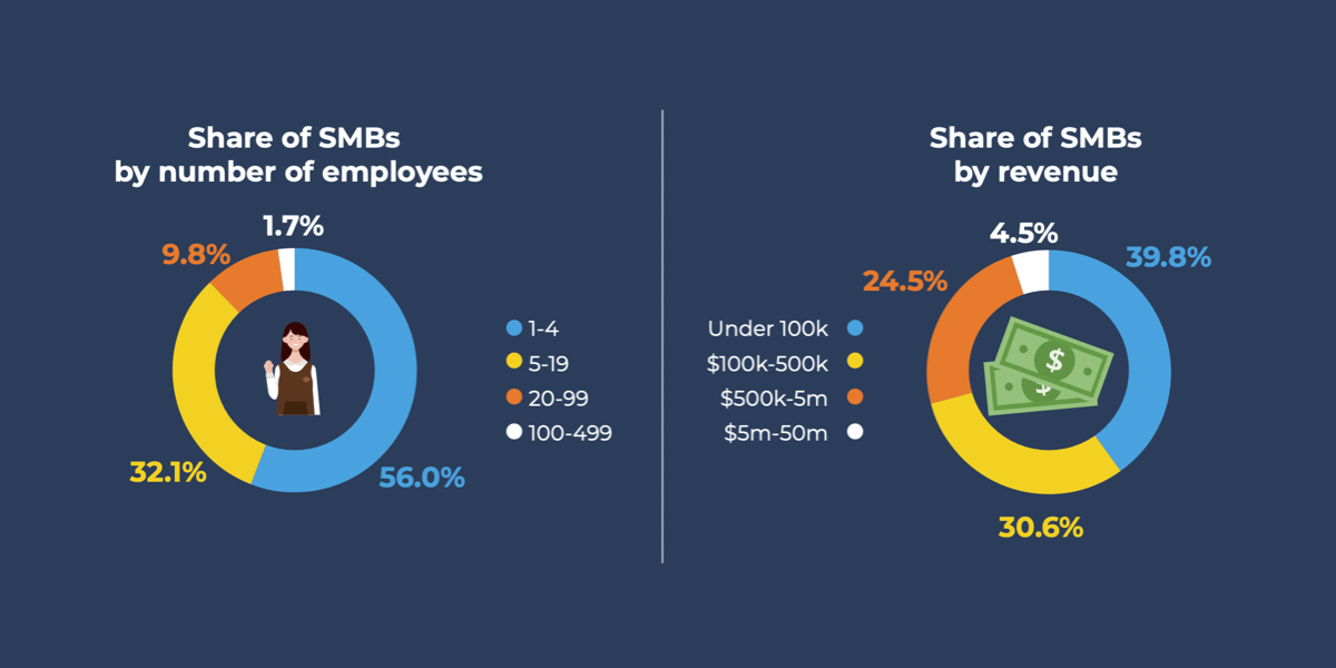 小企业管理局将任何员工少于 500 人的组织定义为小企业。 在美国,小型企业占所有运营企业的 99.9%。 这意味着该国有 3070 万家小型企业。 这是一个惊人的数字,这些企业每年创造约150万个就业岗位,约占美国新增就业岗位总数的64%。