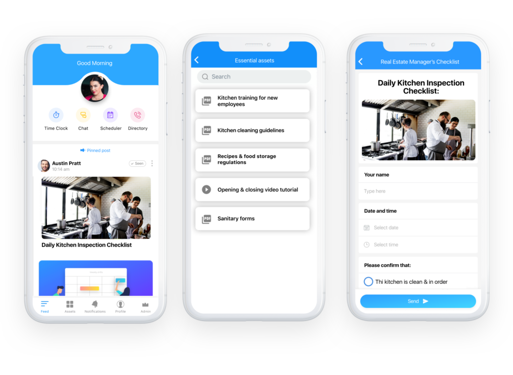 Connecteam 等许多移动应用程序可帮助餐厅老板和经理跟踪任务、员工日程、库存、订单和送货情况。 它们允许用户为餐厅的每个区域创建自定义清单,例如适当的清洁,以确保没有任何遗漏。