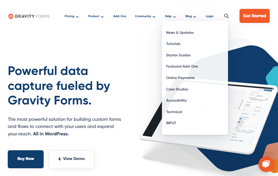 Gravity Forms 是一个功能强大的 WordPress 插件,用于在您的网站上创建和管理表单。 它提供了广泛的功能,包括拖放式表单构建、高级字段自定义以及各种表单字段,包括文本框、下拉菜单、复选框等。