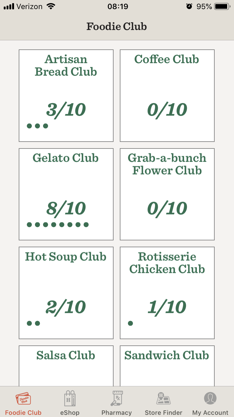 现在,使用该应用程序,客户可以在一个地方管理他们的美食俱乐部奖励。 他们可以使用该应用程序在结帐时扫描他们的俱乐部卡并兑换积分,跟踪他们获得的免费赠品和燃料奖励,并在移动应用程序中剪辑优惠券。