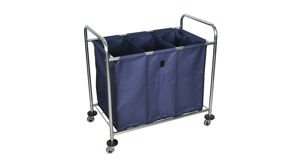 Luxor 重型三隔间洗衣车非常适合医疗机构、酒店、干洗店或投币式洗衣机。 手推车采用重型帆布袋,带有魔术贴扣件,可轻松拆卸和清洗,便于清洁和维护。 海军蓝包分为三个隔层,可帮助您分类和运输衣物。 该手推车还采用镀铬钢框架,提供耐用性和支撑力,支撑杆位于袋子下方以防止下垂。