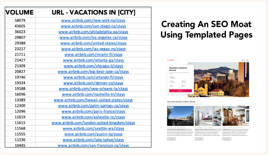 度假租赁巨头 Airbnb 使用 H1 格式“[City] 的度假租赁”的模板登陆页面来帮助构建其 SEO 护城河。