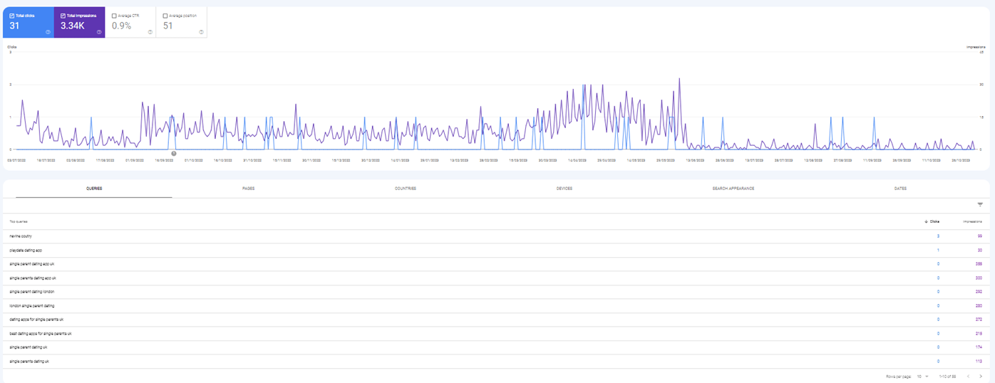 正如您在下面的统计数据中看到的,这次采访在谷歌上的关键词排名,例如企业家的名字、品牌名称以及其他相关搜索词,例如“单亲约会应用程序”。