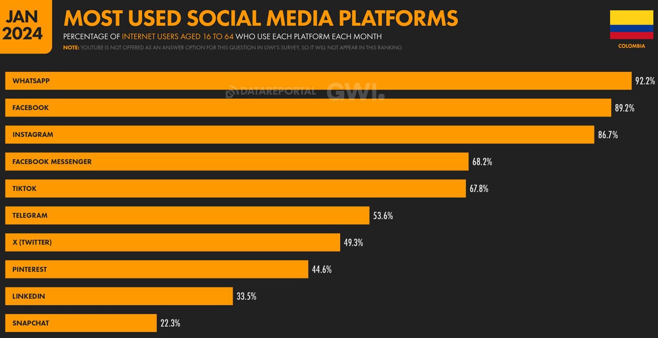 - Instagram :2024年初,Instagram在哥伦比亚的用户数量为2,005万。