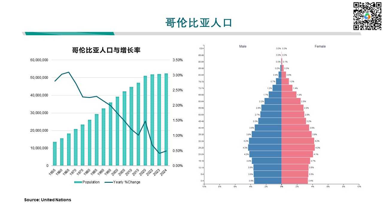 在分布方面,哥伦比亚的人口结构呈现出年轻化的特点,但同时也凸显人口老龄化呈逐渐老龄化的趋势。0-14岁人口占总人口的22.45%,这表明哥伦比亚人口老龄化正在加剧的基础年轻人;15-64岁的劳动年龄人口占总人口的66.66%,这是社会生产力的主体;而65岁及以上的老龄人口占总人口的10.89%,说明哥伦比亚的人口老龄化问题逐渐答案。