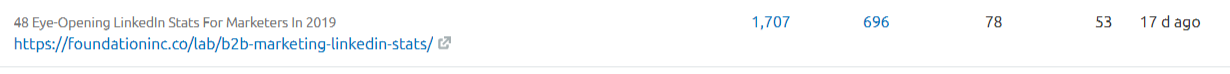 拿这个,LinkedIn统计帖子。 它已经从 696 个域中获得了 1,707 个反向链接,每月访问量达到 15-2 万次。