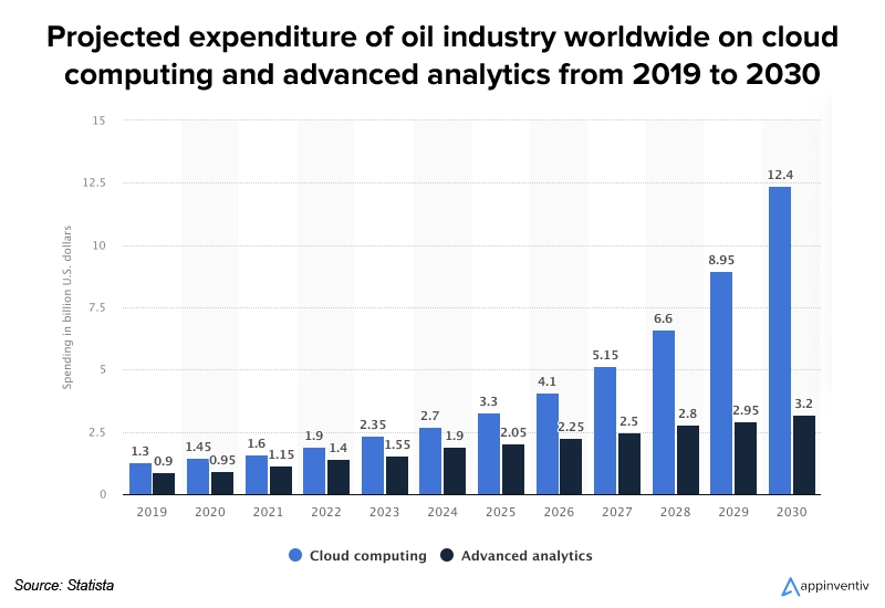 根据 Statista 的报告,到 2030 年,石油行业预计将在 IT 服务上花费超过 120 亿美元,是高级分析预计支出的四倍。