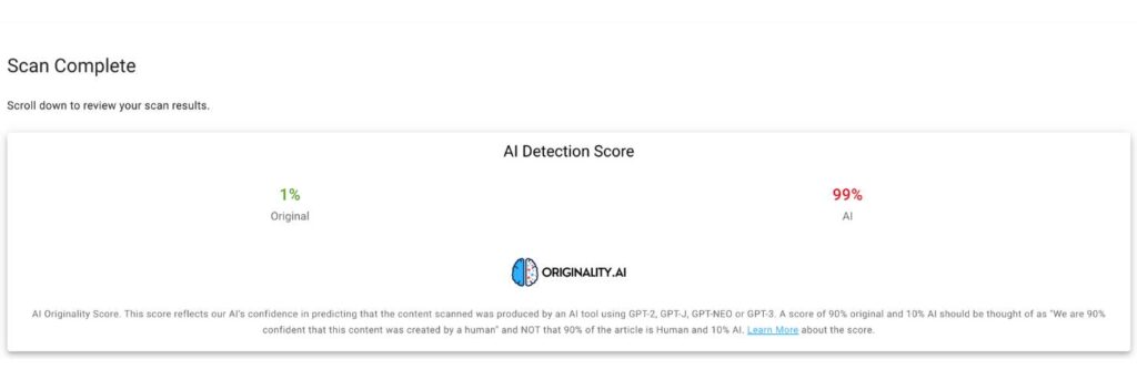 这一次,我扫描了内容以检测它是由 AI 还是人类编写的。 记住这是我写的。