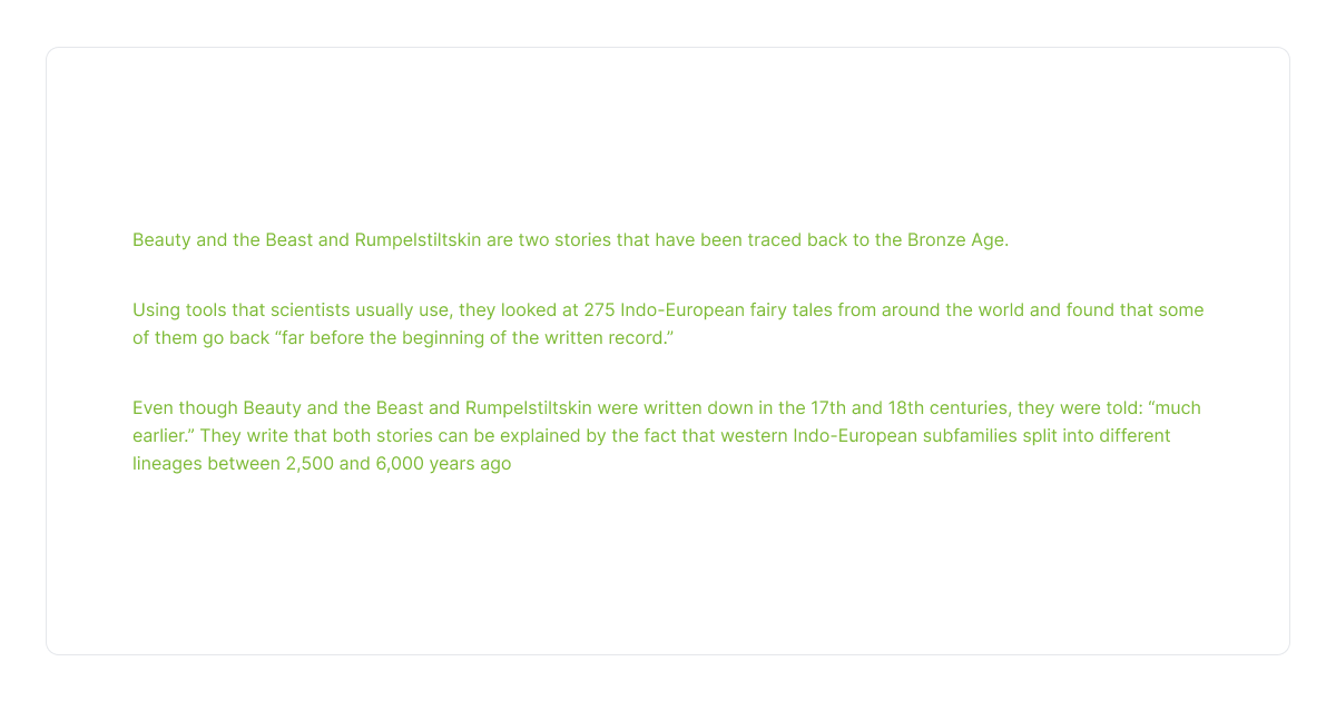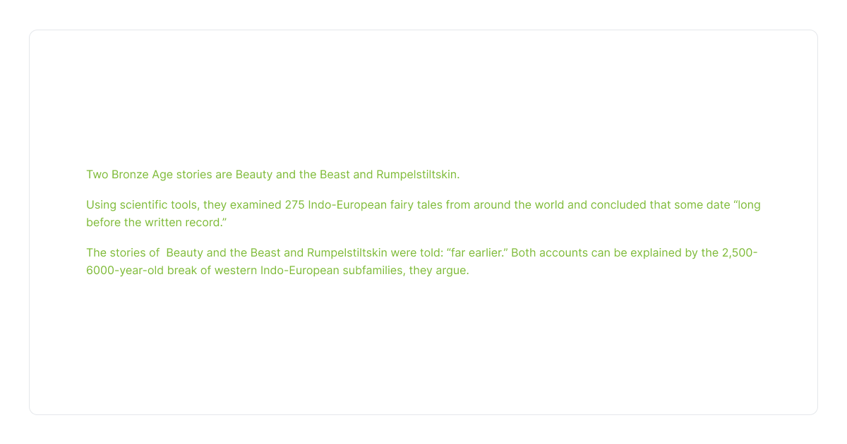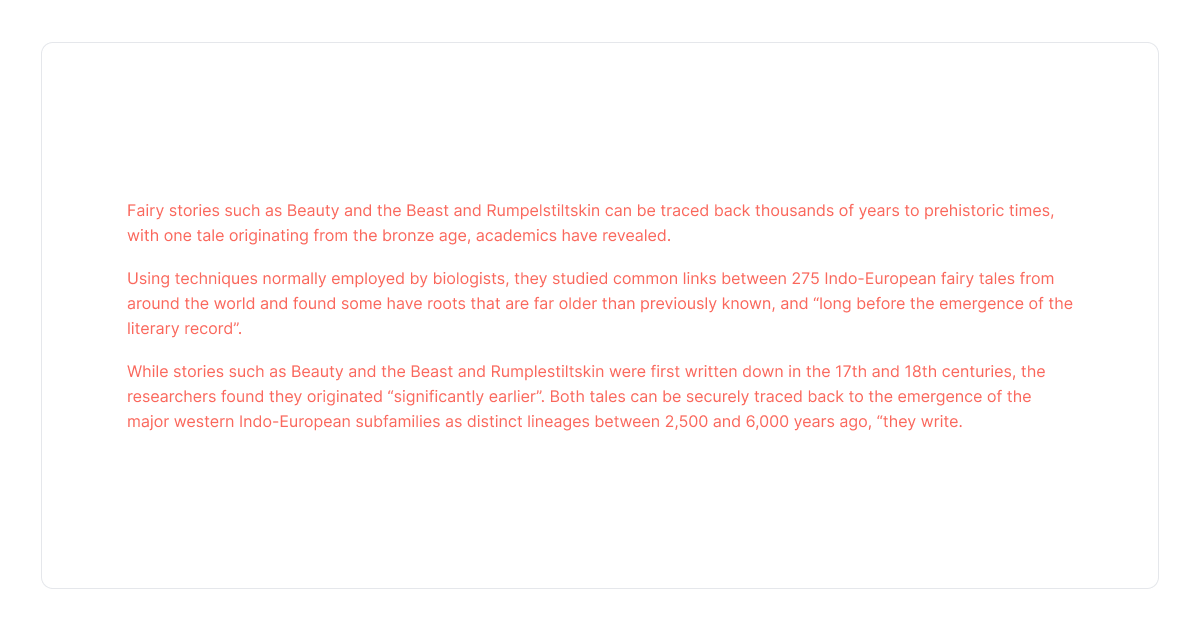 为了帮助您更好地理解,我们将使用文章的以下部分“研究人员说,童话故事比以前想象的要古老得多”: