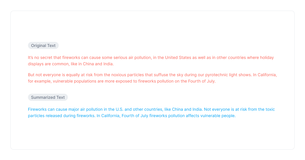 另一方面,当您进行总结时,您希望获得原始文本的较短版本。