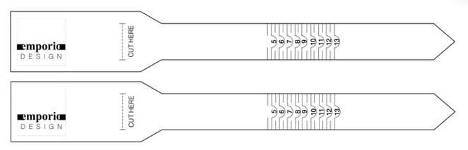 - 纸条——许多可打印的戒指尺寸表都有一个可打印的戒指尺寸条,剪下一个,可以缠绕在手指上,以确定最佳的戒指尺寸。 纸条法实际上是不言自明的。 只需将条带缠绕在您的手指上即可。 条带的末端将与完美的戒指尺寸测量对齐。
