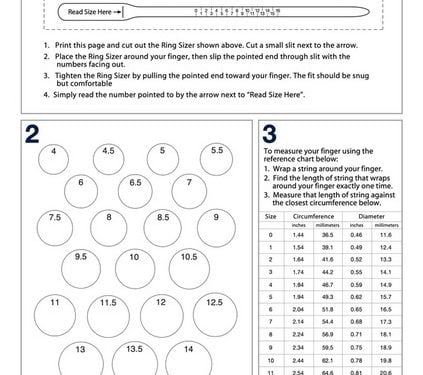 打印后,可以将它们剪下来并用于测量手指的戒指尺寸,方法是在手指周围缠绕一条纸条,或者根据尺寸圆圈图表测量另一枚戒指。 无论哪种方式,测量结果都会标记在打印输出上,以确定最佳戒指尺寸。