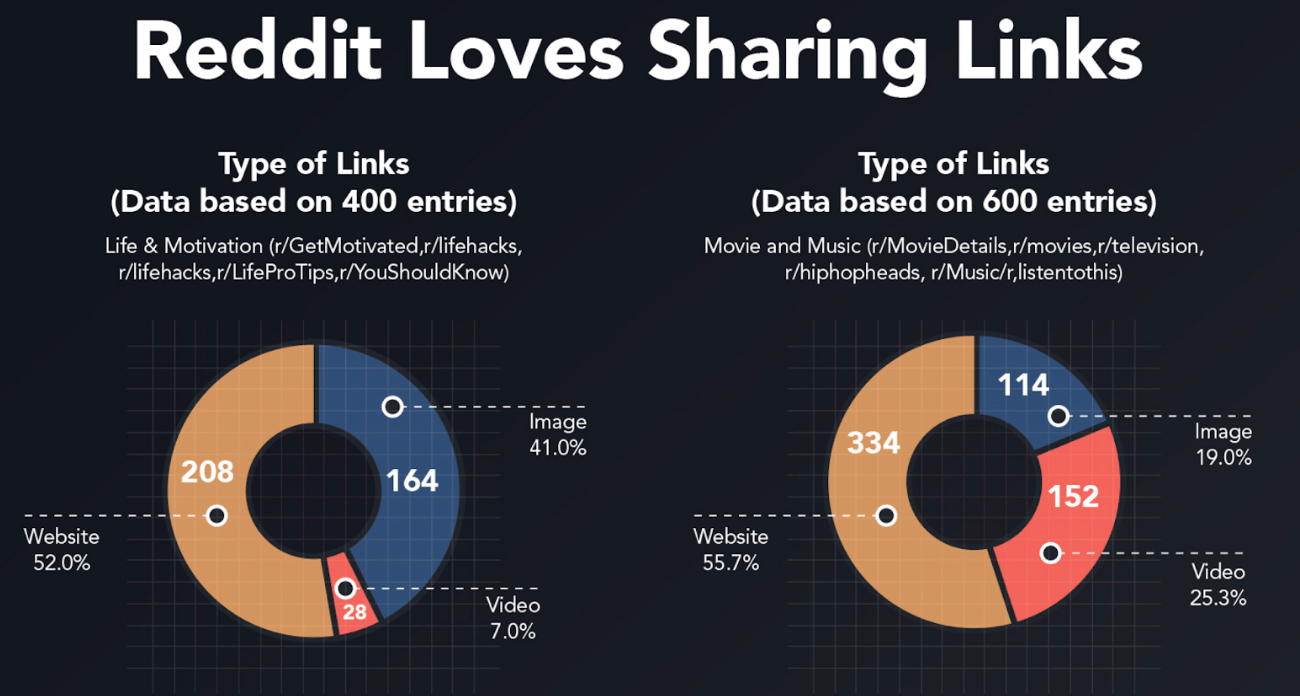 - Reddit 的很大一部分是链接,其中顶级 Subreddit 中超过50% 的内容来自链接。 用户依靠 Reddit 来寻找与他们的兴趣相似的新内容、网站和资源。 Reddit 的赞成票允许用户过滤他们不想要的内容并浏览精选的提要。