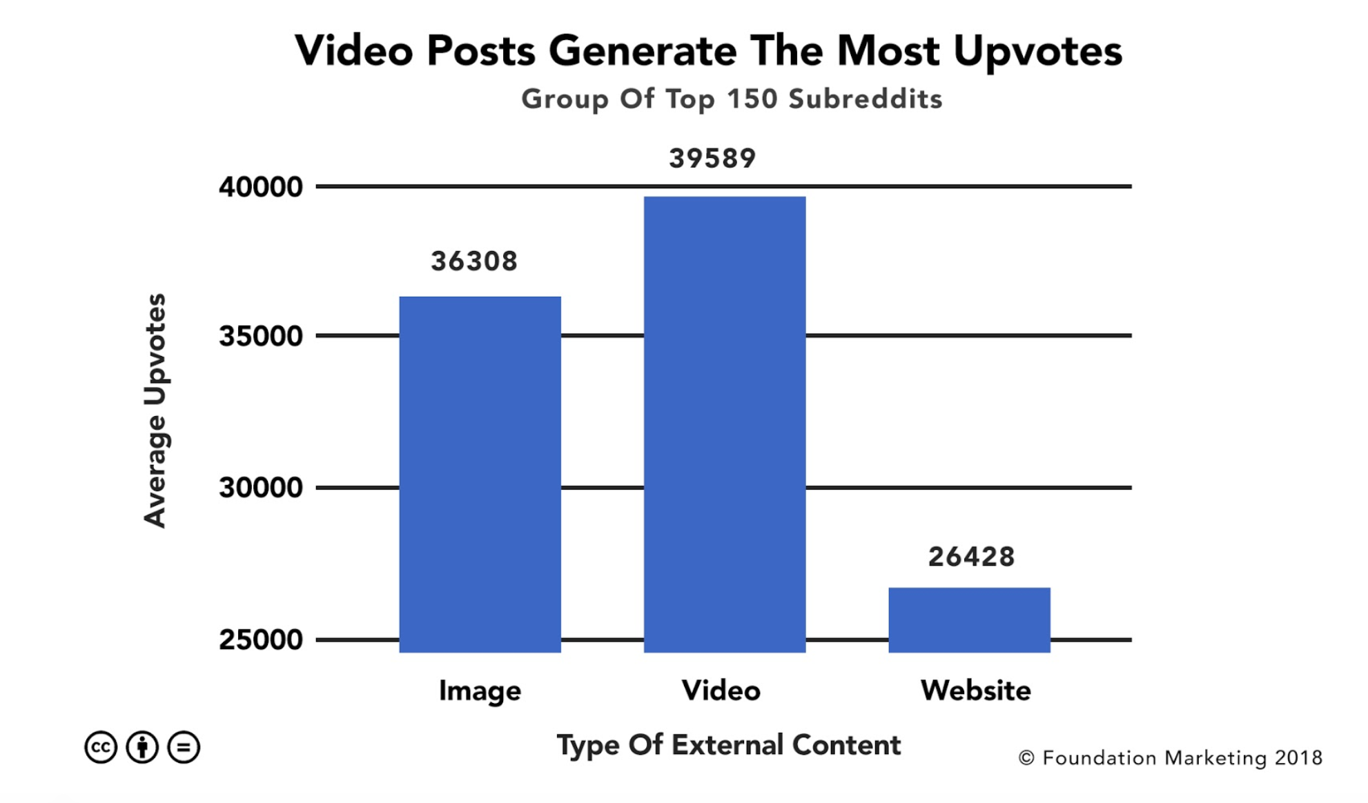 - 虽然链接在平台上很受欢迎,但应该注意并非所有外部内容都是一样的。 帖子可以链接到网站、照片共享站点(例如 Imgur)或视频共享站点(例如 YouTube)。 平均而言,视频创造的点赞最多,其次是照片。 因此,与网站链接相比,最热门的照片和视频帖子创建的点赞数超过 10,000 个。