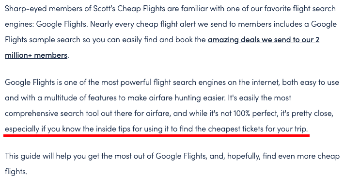 如果您查看 Scott 的廉价航班寻找廉价航班指南,您会注意到该品牌的营销团队对这一原则的认同程度。