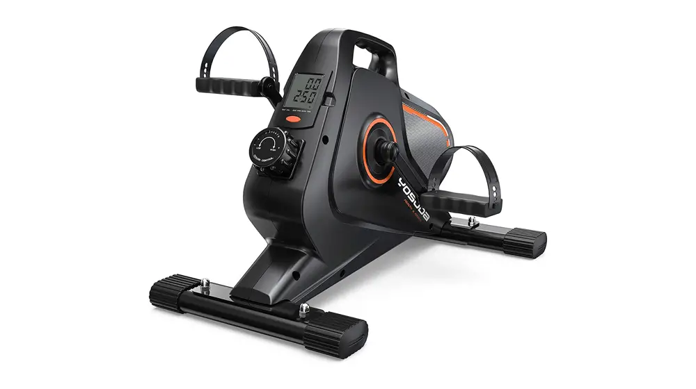 这款磁力驱动桌下脚踏自行车非常安静,只有 5 分贝。 它重 22 磅,有 8 个可调电阻、4 个防滑橡胶垫和一个液晶显示器。 该公司还提供一年的免费零件更换服务。