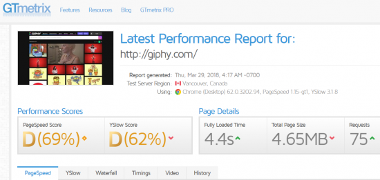 有一个很棒的工具可以告诉您可以改进哪些内容以使您的网站更快。 您可以免费审核任何网站。 您不必是网站所有者即可开始审核(即我审核了 Giphy.com)。 该工具结合了来自 Google PageSpeed Insights 和 Yahoo Slow 的数据和提示。