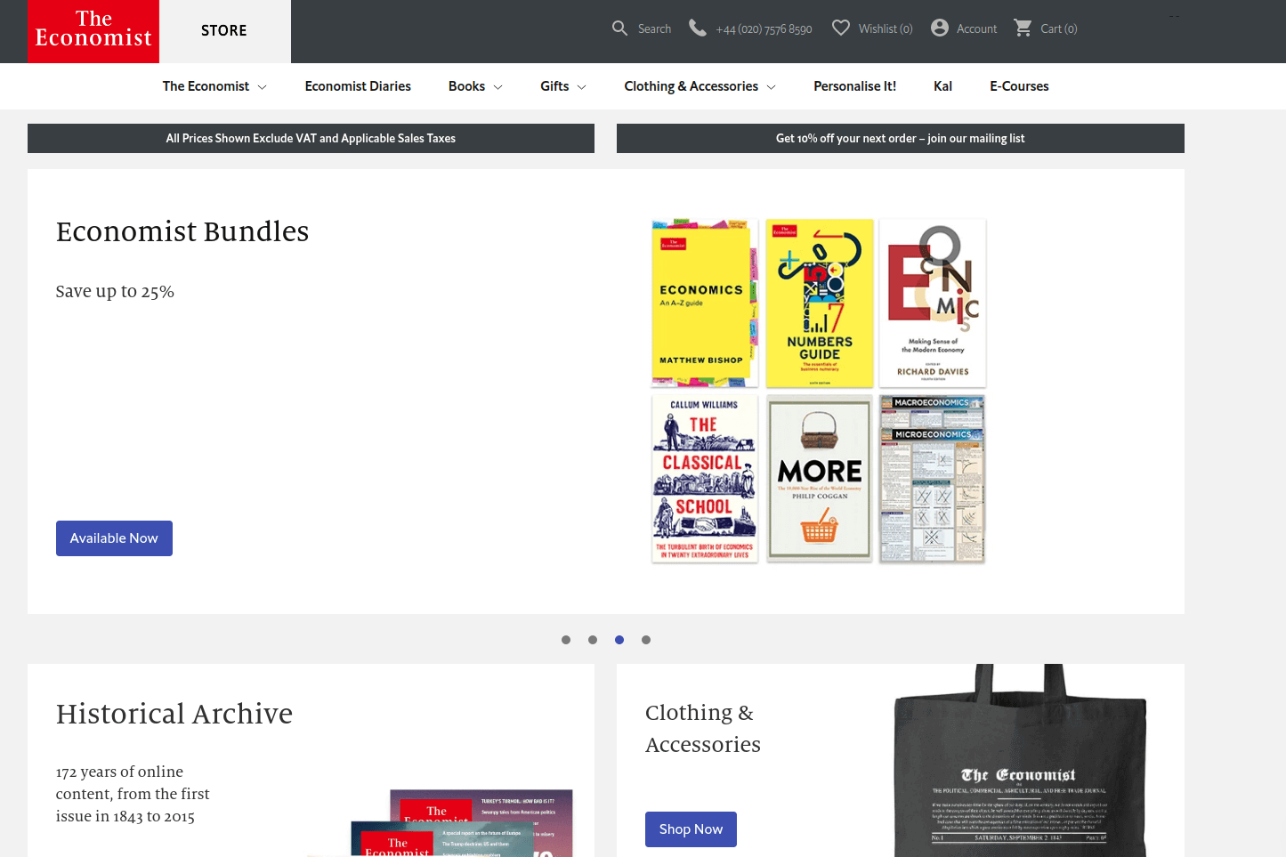 《經濟學人》決定將 Shopify 作為其在線商店的平台。 從日記、書籍和配件來看,Shopify 是商店的明顯選擇。 這個網站是一個很好的例子,說明最好的 Shopify 商店並不總是奢侈品。